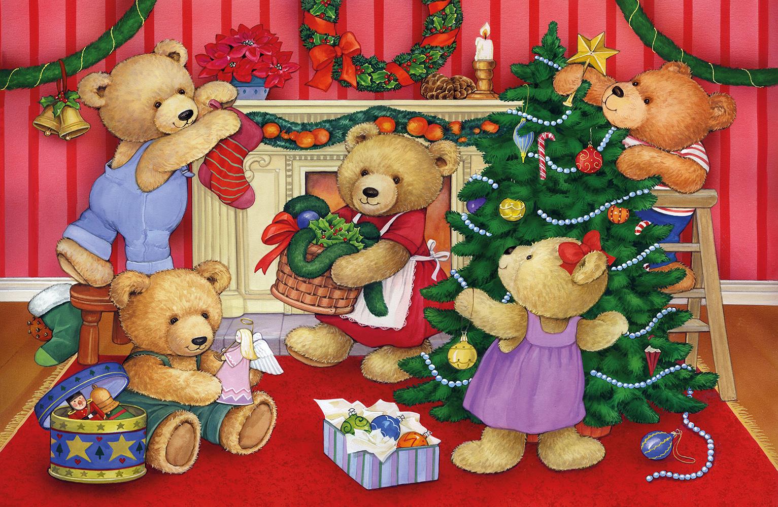 🧸 Puzzle 1: Step inside a snug family living room, where a cheerful clan of bears are decorating the tree, hanging stockings and sharing the simple joys of the season.