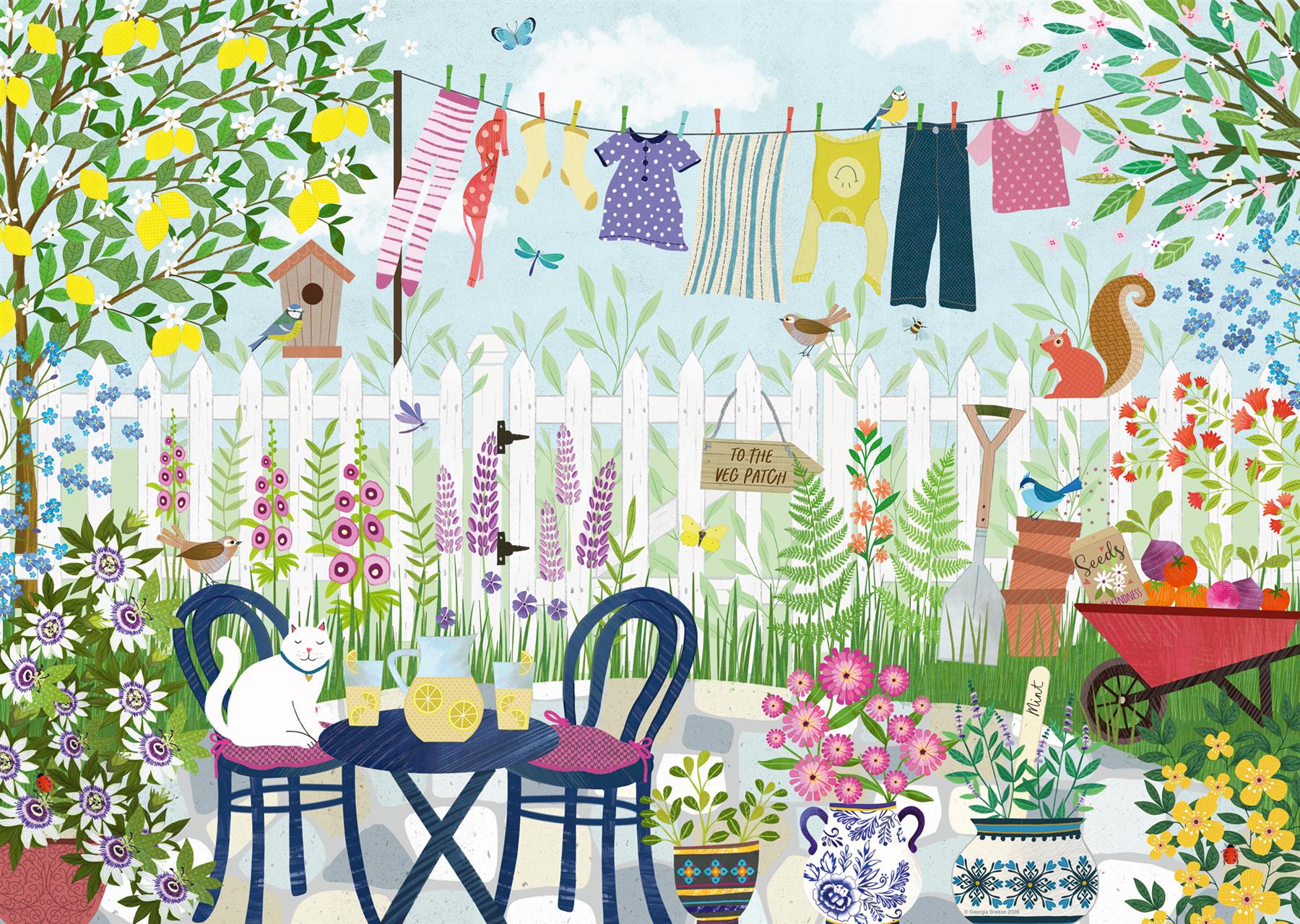 Summer Garden is a bright, contemporary jigsaw puzzle that captures the easy charm of a sunny garden in full bloom.
